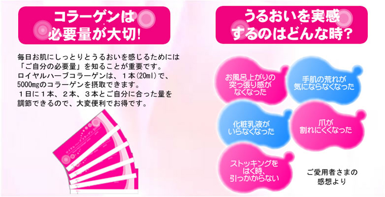 ロイヤルハーブコラーゲンは1本(20ml)で5000mgのコラーゲンを摂取できます。